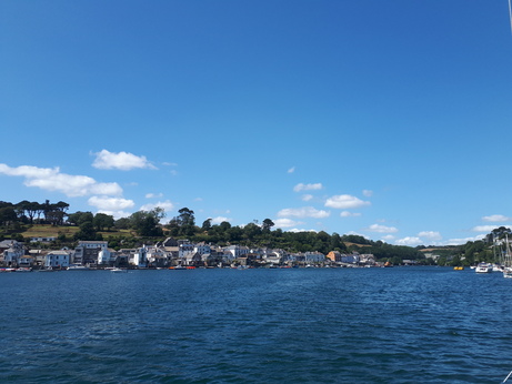 Nous commençons par tirer des bords pour sortir du goulet de Brest avec le vent de face. Chaque manœuvre réveille la douleur mais elle me paraît supportable. Une fois sorti du goulet, le vent est malheureusement aux abonnés absents. Nous allumons le moteur car nous savons qu’il faut impérativement avancer et sortir du chenal du Four avant la bascule de courant. Les prévisions annoncent le retour du vent dès la sortie du chenal du Four. Malheureusement, Éole se fait attendre. Nous jouons en fait au chat et à la souris toute le nuit avec le vent qui ne s’établit franchement qu’en début de matinée. Nous pouvons alors envoyer le spi et avancer à très bonne vitesse vers notre première destination outre manche, Fowey. Nous entrons dans l’embouchure vers 16h00 après une transmanche un peu désastreuse puisque nous totalisons presque 12 heures de moteur, ce qui n’est pas franchement le genre de la maison. Heureusement, la récompense est de taille. La rivière semble un havre de paix entourée de deux petits villages aux maisons colorées. Il y a par contre peu de places disponibles. Nous nous amarrons sur une bouée assez haut sur la rivière. Nous sommes fatigués mais heureux d’avoir traversé la manche et de retrouver l’ambiance des côtes britanniques. Les douleurs se réveillent avec le refroidissement de l’organisme. Je crains avoir une ou deux fractures de côte. Même si cela n’est pas très raisonnable, je décide de ne pas en parler à la faculté et de continuer le traitement antalgique. Je n’ai nullement envie de me voir interdire de naviguer.