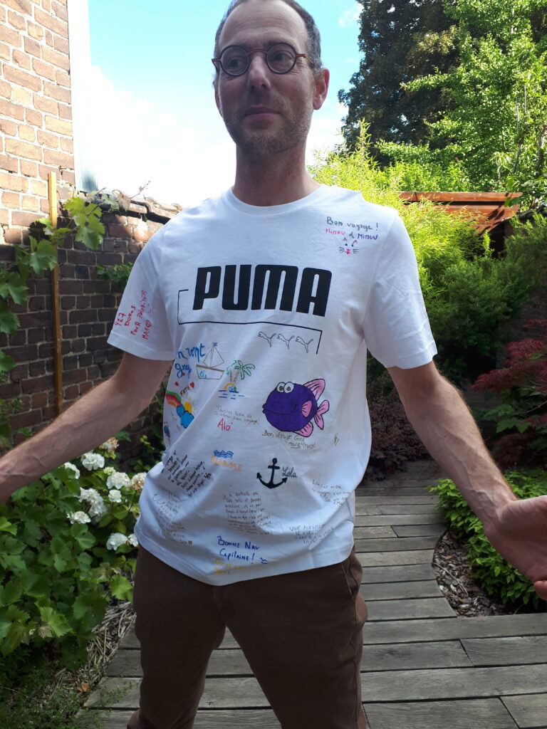 Un peu surpris et ému, je bredouille quelques mots de remerciement. Pour être tout à fait honnête, j’ignorais que lorsqu’on s’offrait le luxe d’abandonner son travail durant 14 mois au profit de ce qui sera les plus longues vacances de ma vie, on avait en plus droit à des cadeaux et une petite fête.