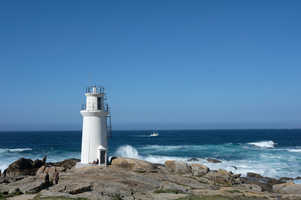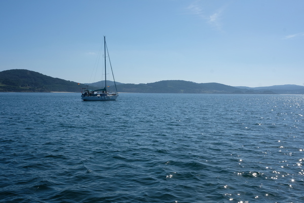 Après un peu plus d’une semaine passée à La Coruna, il est temps d’envisager le départ. Nous décidons de mettre cap vers la ria Camarinas qui se trouve à environ 50 miles nautiques de la Coruna, ce qui représente plus ou moins dix heures de navigation. Le vent prévu est assez faible mais nous pensons avoir trouvé un bon créneau la nuit du 2 au 3 Octobre. En partant vers 20h00, nous devrions arriver au lever du jour à Camarinas. Nous larguons donc les amarres le dimanche 2 Octobre vers 20h00 pour une navigation en flottille avec le voilier Picasso. Le vent est bien établi au départ et nous avançons bien sur la route. Malheureusement, il vent tombe progressivement en début de nuit, nous obligeant à lutter pour garder les voiles gonflées. Vers minuit, la situation est telle que nous craquons et allumons le moteur. Le réconfort apporté par les conversations VHF avec l’équipage de Picasso est bien nécessaire car la navigation de nuit, dans la houle et sans vent n’a rien d’agréable. Vers 4h00 du matin nous retouchons suffisamment de vent que pour renvoyer les voiles et éteindre le moteur. Nous entrons dans la Ria Camarinas alors qu’il fait encore nuit noire. Pour arriver au port, nous slalomons entre les petits bateaux de pêche tout en essayant de respecter l’alignement indiqué par le feu de secteur. Nous amarrons vers 7h00 du matin et contrairement à nos habitudes, nous ne rangeons rien dans la bateau et filons prendre quelques heures de sommeil.