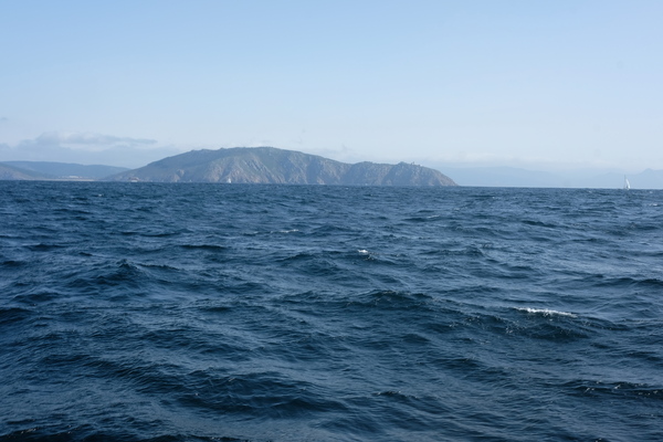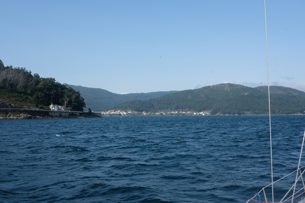 Nous quittons Muxia le vendredi 7 Octobre, toujours en flottille avec les voiliers Tarumba et Picasso. La navigation d’une quarantaine de milles nautiques doit nous emmener vers la ria Muros en passant par le cap Finisterre. Le vent du nord souffle à environ 15 nœuds avec des rafales entre 20 et 25 nœuds. Nous redoutons tous un peu le passage du cap Finisterre, le point le plus à l’ouest de la côte Espagnole. En effet, ce cap est réputé pour provoquer des accélérations importantes du vent et lever la mer. Ce jour là, les éléments sont cléments. Nous passons au large du cap à la faveur d’un vent qui reste stable et avec une bonne houle mais longue et rangée. Tous les équipages apprécient la navigation et admirent la beauté de cette partie de la côte Galicienne.