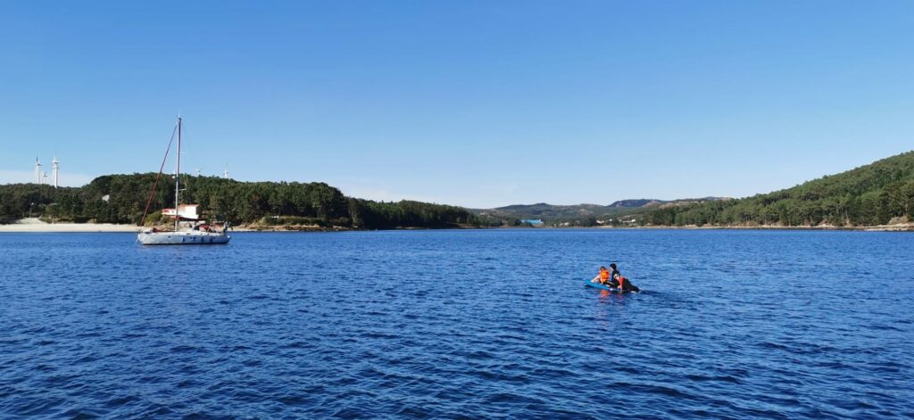 Le doute ne nous empêche pas de profiter du moment présent. Les Asturies sont colorées, musicales et festives. La Galice est une région riche en histoire et en paysages, qui donnent envie de s’enfoncer dans les terres (d’autant que la mobilité douce est aisée en Espagne, et les transports en commun très bien organisés). Même si les jours d’octobre raccourcissent, les températures diurnes restent très agréables et les baignades dans les rias féeriques. Entre plage et montagne, entre culture, plongée et randonnée, le temps semble s’être arrêté. Nous découvrons, hors saisons, des havres de paix. Bien entendu, Santiago de Compostella échappe à la règle car toute saison accueille les pèlerins, très nombreux, jeunes et vieux, de tous horizons. Avec magnificence et goût, les croisades prouvent avoir été extrêmement rentables. La cathédrale et ses alentours nous impressionnent. Enfin, lorsque les vents le permettent, nous décidons de franchir le Cap Finisterre (celui où la terre se termine). La fenêtre météo devait être très favorable, car nous le franchissons plutôt bien, à notre grande surprise. Il nous semble paradoxalement plus aisé que le cap Ortegal. Nous reprenons confiance, et envie de naviguer. Nous relativisons les doutes et les maths. Nous ne savons pas si nous traverserons l’Atlantique, mais nous profitons du voyage.