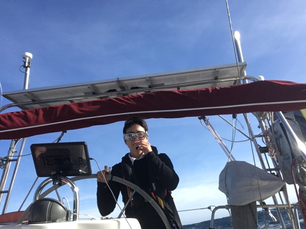 Notre projet datant de quelques années avant le départ, j’avais pris soin d’organiser des rendez-vous pour une kinésithérapie vestibulaire, pour moi-même et pour Charlotte, afin de préparer le voyage. Cet entraînement vestibulaire est certainement très utile,10,11,12 il s’agit même de la mesure non-pharmacologique la plus efficace.1 Cependant dans notre cas, le timing était mal choisi. Tout d’abord, à cause des impératifs de la vie active et de la contrainte des séances de kinésithérapie (on en sort malade), ces séances étaient probablement trop peu nombreuses et trop espacées les unes des autres pour que leur bénéfice s’additionne. Ensuite, elles étaient trop éloignées dans le temps par rapport au départ réel, or leur effet s’estompe au fil des semaines. Le bénéfice total était donc mitigé. Par contre, nous en avons retenu les principes généraux, que nous pouvons appliquer nous-mêmes en navigation pour optimaliser notre amarinage. Par exemple, la station debout pendant les navigations permet de mieux gérer les afférences proprioceptives. J’ai longtemps cherché la position idéale, qui en réalité varie en fonction du sens du vent, des vagues et de la pluie. Lorsque la navigation est au pré, se rapprocher de l’avant et porter son regard sur l’horizon devant le bateau peut aider. Lorsque la navigation est au portant, il est parfois plus utile de regarder vers le côté ou l’arrière (sauf bien entendu si les vagues viennent par l’arrière : tout un art). La station debout permet aussi de ne pas rester statique, et de pouvoir anticiper les mouvements du bateau. Tenir la barre permet également de mieux prédire les mouvements et oblige à porter son regard vers l’avant. On effectue ainsi une habituation douce et naturelle, lorsque c’est possible (lorsque le mal de mer est trop intense, c’est évidemment illusoire et il vaut mieux se coucher). Enfin, le port de lunettes de navigation (de type boarding ring) permet de compenser la stimulation visuelle.13 L’idée de ces lunettes est de donner à l’oeil les mêmes informations que l’oreille interne. Elles peuvent être un complément à l’entraînement vestibulaire mais ont leur propres limitations (elles ont une taille parfois trop larges pour les petites têtes, trop étroite pour les têtes à lunettes de vue, et comme toutes les lunettes dans la houle et les embruns, elles doivent être régulièrement nettoyées sous peine d’être contre-productives).