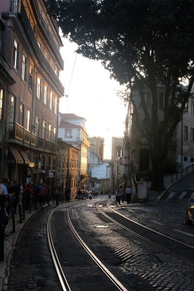 Nous arrivons à la gare Santa Apolina de Lisbonne par un début d’après-midi ensoleillé. La gare se trouve au pied du quartier historique de d’Alfama que nous traversons pour arriver à notre logement. Nous passons l’après-midi et la soirée à déambuler dans les ruelles de ce quartier historique au gré de notre inspiration. Nous décidons de consacrer la journée du lendemain à l’exploration du quartier de Belem. Pour la petite histoire, une erreur dans le choix de l’arrêt de bus nous conduit bien au delà de notre destination. Nous visitons donc malgré nous les faubourgs durant une marche de plus d’une heure qui nous ramène vers la tour de Belem et le monument aux Découvertes. A nouveau, nous sommes impressionnés par la quantité de touristes (dont nous faisons partie) qui visitent la ville à cette saison. Il y a tant de monde qu’il est illusoire de visiter l’un de ces sites sans réservation préalable. Nous nous contentons donc d’une longue promenade sous le soleil, entre le front de mer et le monastère des Hiéronymites. Forts de cette expérience, nous réservons en ligne des tickets pour la visite du château St Georges le lendemain. Ironie du sort, il pleut tellement qu’il y a très peu de visiteurs au château et que nous sommes les seuls de notre groupe. Nous bénéficions donc d’un guide privé durant une heure. L’après-midi nous conduit à la Praça do Comercio et au quartier plus commerçant. Nous y admirons l’ascenseur de Santa Justa qui tombe en panne devant nos yeux, provoquant la dissipation de la longue file des prétendants à la promenade, ainsi que le couvent des Carmes. Enfin, nous terminons notre parcours par la visite du quartier historique de la Baixa avant de reprendre le train en direction de Porto.