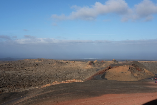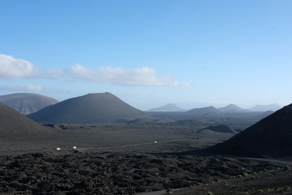 Nous optons pour des visites organisées en car parce que le réseau de bus est assez peu développé sur l’île et que nous ne sommes pas franchement tentés par la location d’une voiture. La première excursion que nous réalisons nous emmène dans la réserve naturelle de Timanfaya dont le nom n’est autre que celui d’un des principaux volcans qui la constitue. En plus de nous guider à travers ces immenses champs de lave, notre guide nous explique combien la vie sur l’île était difficile et précaire avant l’essor du tourisme. En effet, en raison de la relativement basse altitude de ses volcans, Lanzarote est l’île sur laquelle il pleut le moins. Cette carence permanente en eau douce a façonné l’habitat et l’agriculture sur l’île d’une façon encore bien visible aujourd’hui, malgré l’avènement des centrales de désalinisation.