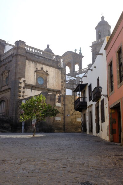 La vie au mouillage est un peu plus lente qu’au port, essentiellement car toutes les activités qui impliquent d’aller à terre nécessitent un trajet en annexe entre le bateau et le port. La plupart du temps, nous consacrons les matinées aux travaux scolaires et à un peu d’entretien du bateau. L’horaire est bien évidemment flexible en fonction des visites et excursions que nous envisageons. L’après-midi est le plus souvent consacrée aux visites et aux activités ludiques avec les copains. Nous première visite fut celle du centre historique de Las Palmas. Il est connu pour ses bâtisses typiques, sa cathédrale et la Casa Colon, un maison ayant appartenu à Christophe Colomb et qui abrite aujourd’hui un musée consacré à ses différents voyages autour de l’atlantique.