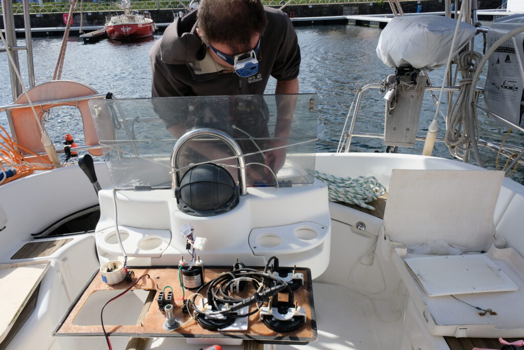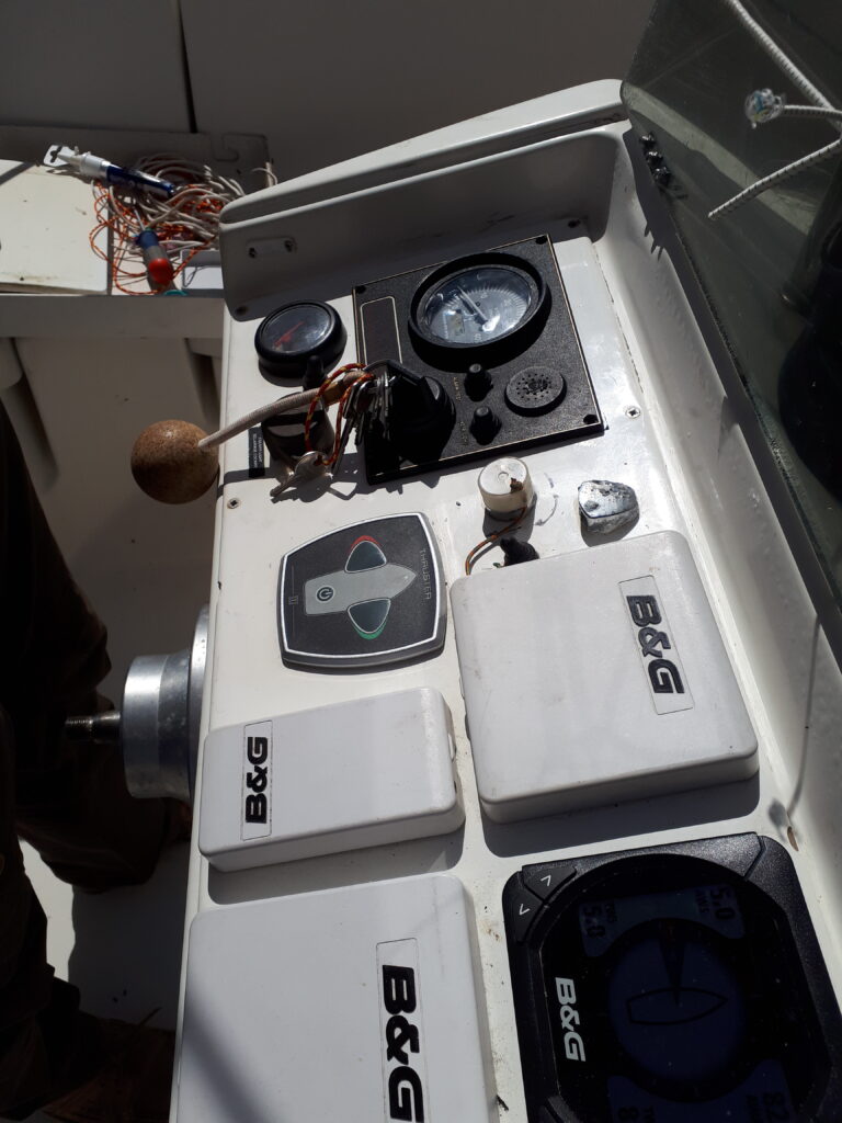 Malheureusement, au terme de la première navigation, le moteur refuse de démarrer devant l’écluse Mercator à Ostende. C’est un comble ! Il faut faire le « coup du tournevis » au démarreur. Une fois amarré, je démonte le tableau de bord une nouvelle fois pour essayer de comprendre d’où viennent ces problèmes. Cuit par deux décennies d’UV, le plastic tombe littéralement en ruine. Les problèmes ne s’arrêtent pas là. Alors que le tableau de bord est démonté et que je suis occupé à l’inspecter sur la table du carré, le moteur redémarre une nouvelle fois tout seul.