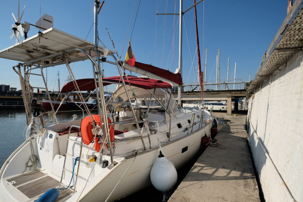 La descente du canal Bruxelles-Escaut avec le passage des écluses de Zemst et Wintam est un excellent exercice pour se familiariser avec les manœuvres au moteur. Après un nuit passé à la marina Willemdok d’Anvers, nous descendons l’Escaut maritime inférieur jusqu’à Breskens. Enfin, le troisième jour, nous longeons le littoral jusqu’à Ostende où une place nous attend à la marina Mercator. La maria Mercator (https://www.mercatormarina.be/nl) sera le port d’attache de Lady Mi jusqu’à notre départ. Nous y avons passés trois excellentes saisons et remercions tous le personnel pour son agréable collaboration. Une mention spéciale pour Patrick.