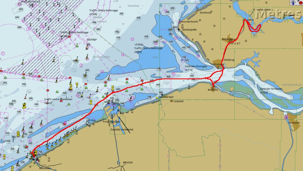 Avec Patrick, nous avons navigué jusqu’au Veerse Meer et puis sommes rentrés à Ostende via Breskens. Nous avons passés trois excellentes journées ensemble. J’ai pu lui expliquer toutes les difficultés que nous avions rencontrées. Nous les avons débriefées ensemble et ses conseils m’ont aidé à adapter ce que j’avais appris lors des stages à la configuration de l’équipage réduit. Merci beaucoup Patrick.